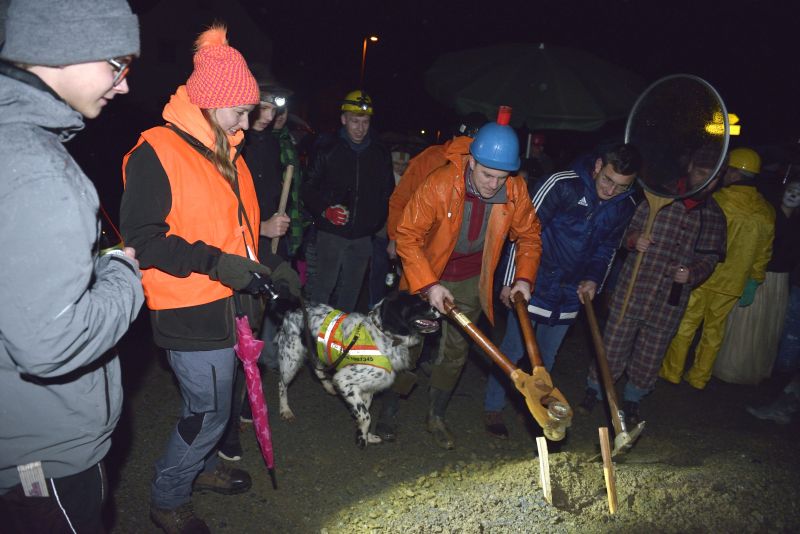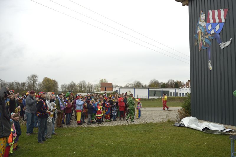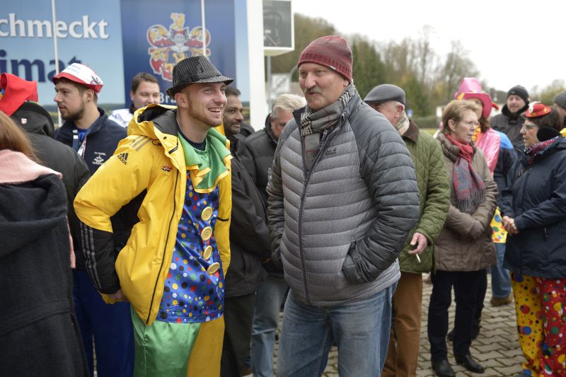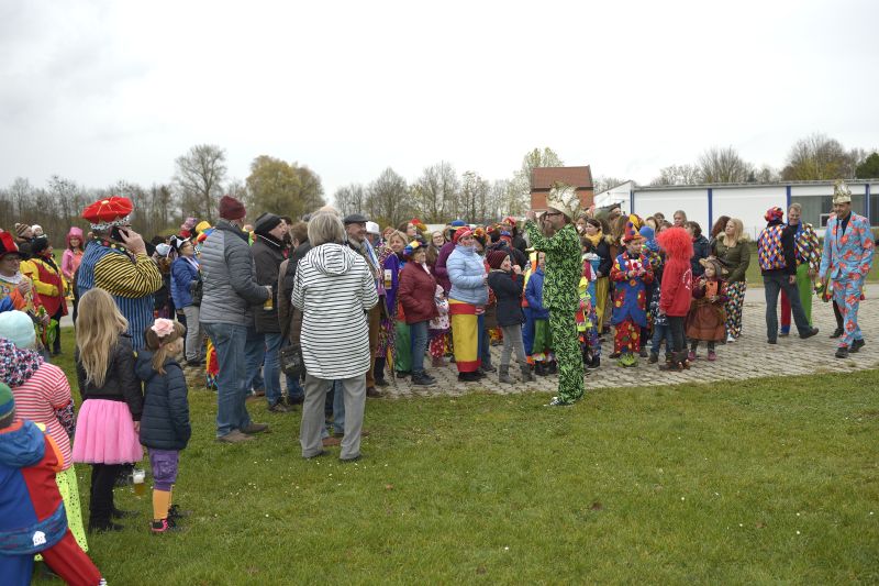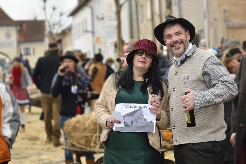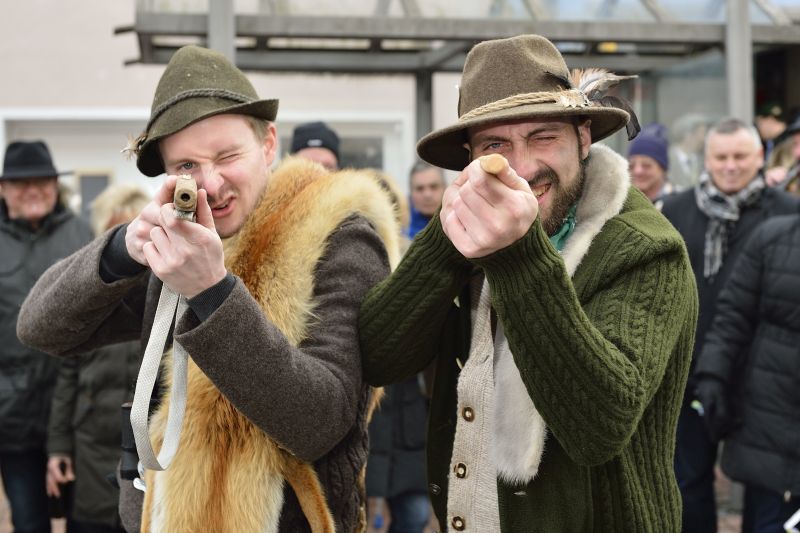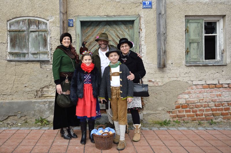 Bei bewölktem Himmel wurde der Teisbacher Fasching in bester Stimmung beim traditionellen Faschingsanbau zünftig ausgesät. Zahlreiche Besucher konnten das beeindruckende Spektakel ohne Regenschirm genießen.