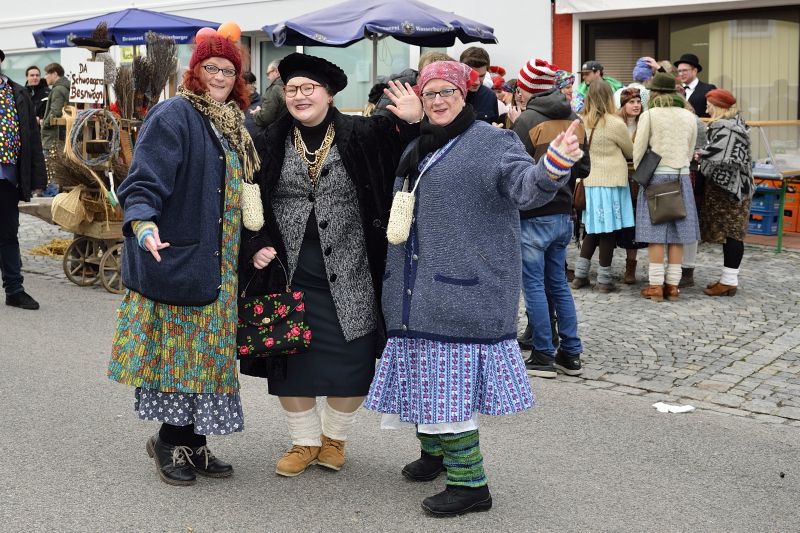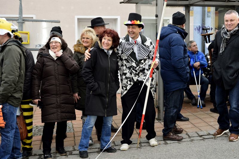 Noch am Sonntagvormittag herrschte strahlend blauer Himmel über Teisbach. Doch ausgerechnet zum Beginn des Faschingsumzugs setzte bei geringen Plustemperaturen ein Schneeregen ein. Das Wetter konnte aber allen Mitwirkenden und den tausenden Besuchern die gute Laune natürlich nicht verderben. So schlängelte sich der farbenfrohe, spektakuläre Gaudiwurm mit über 40 Zugpositionen durch den Markplatz.