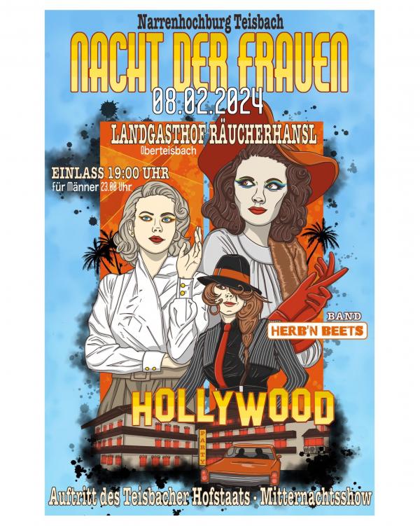 Auch in diesem Jahr lädt die Narrenhochburg wieder herzlich zu dem traditionellen Weiberfasching am 08. Februar ab 19 Uhr in Oberteisbach ein. Diesmal unter dem Motto: HOLLYWOOD!