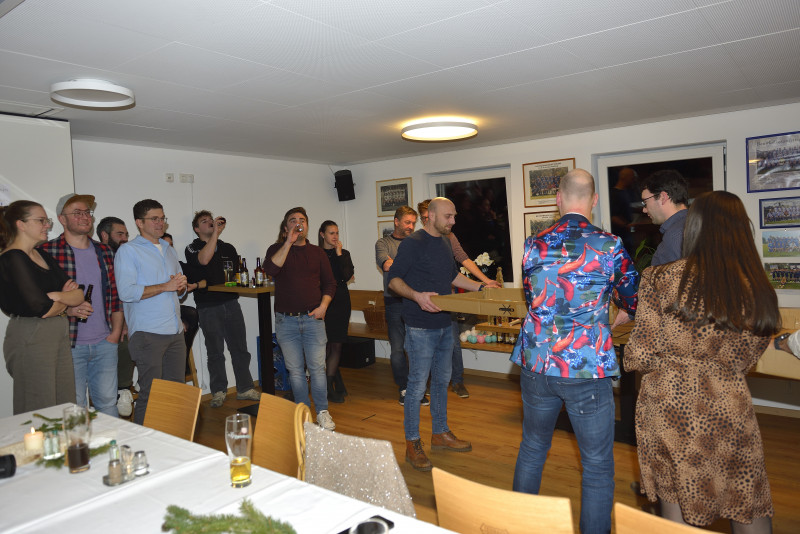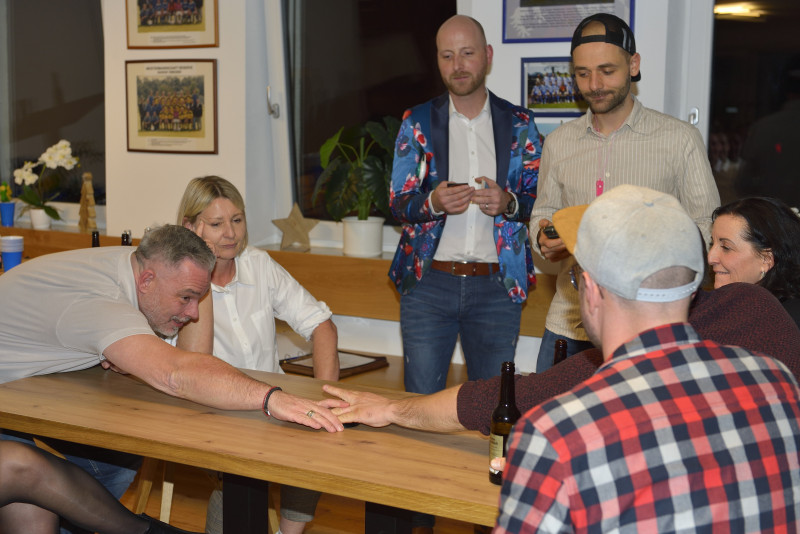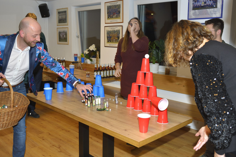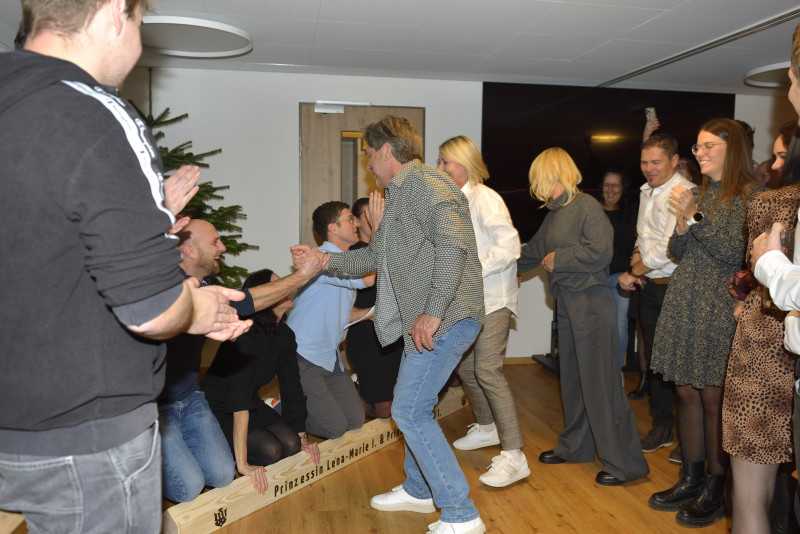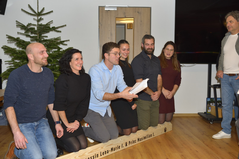 Wie es der Brauch verlangt, kniete das Präsidium auf dem Holzscheit nieder und bat bei den Eltern und beim Prinzenpaar selbst um das ersehnte „Ja!“. Doch bevor dieses ausgesprochen wurde, mussten die Mitglieder des Präsidiums erst ihr Können beweisen. In amüsanten Spielen, war Teamwork, Geschick und eine gute Portion Humor gefragt.